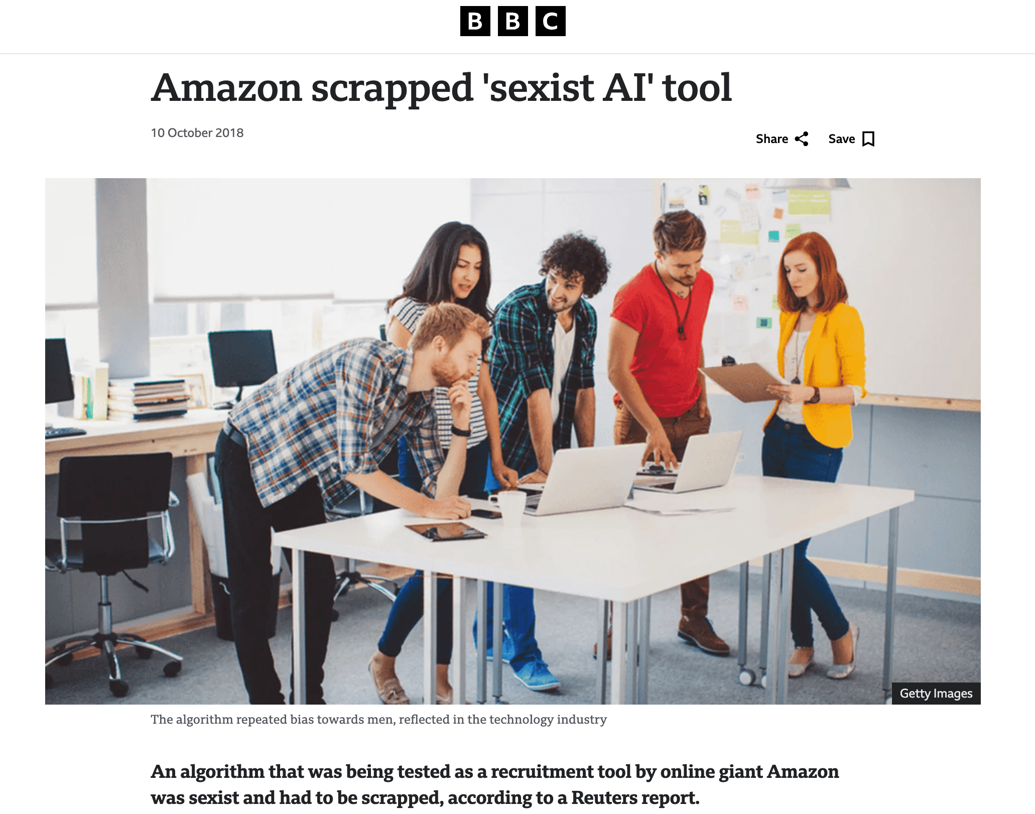 Bias in hiring (https://www.bbc.com/news/technology-45809919)